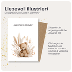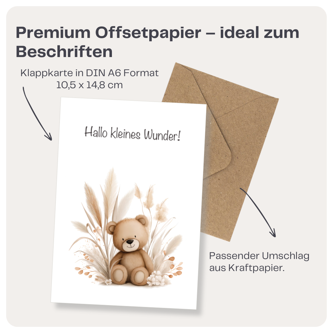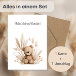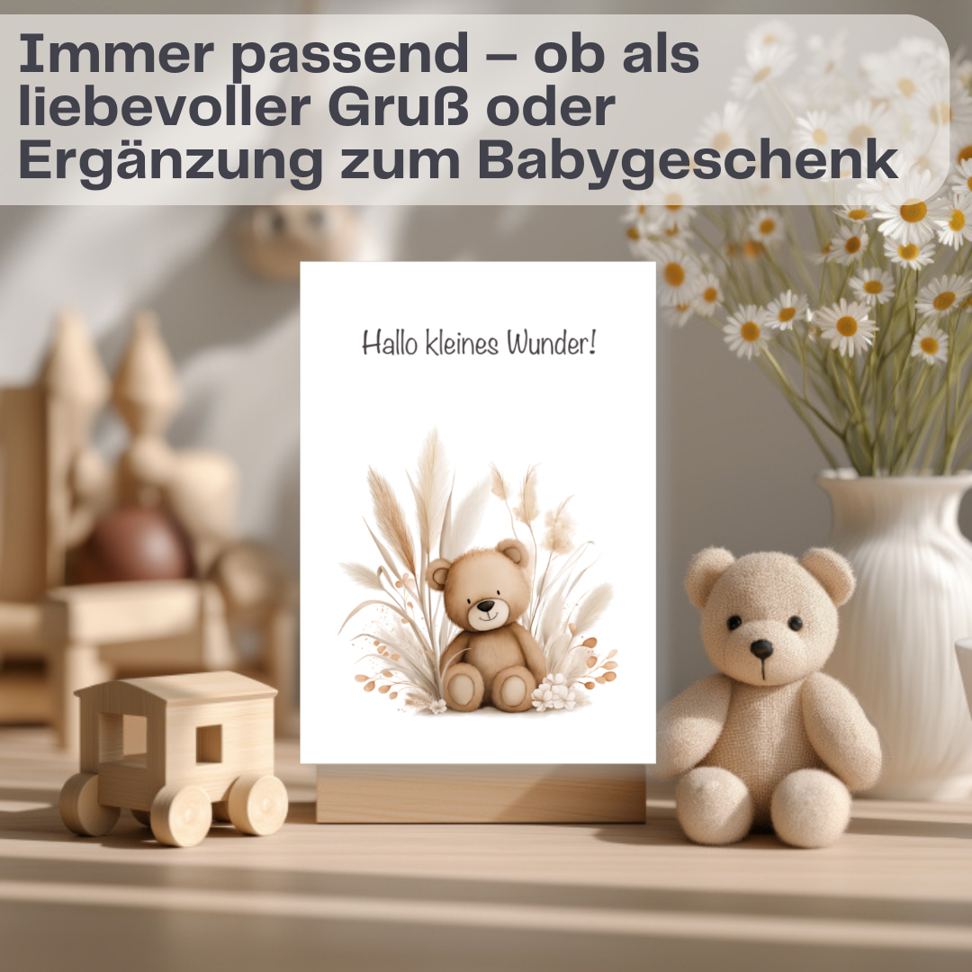 Geburtskarte Bärchen, Klappkarte zur Geburt Boho, Neutrale Glückwunschkarte Jungen, Mädchen | Babykarte, Postkarte Geburt, Klappkarte Baby Hallo kleines Wunder!