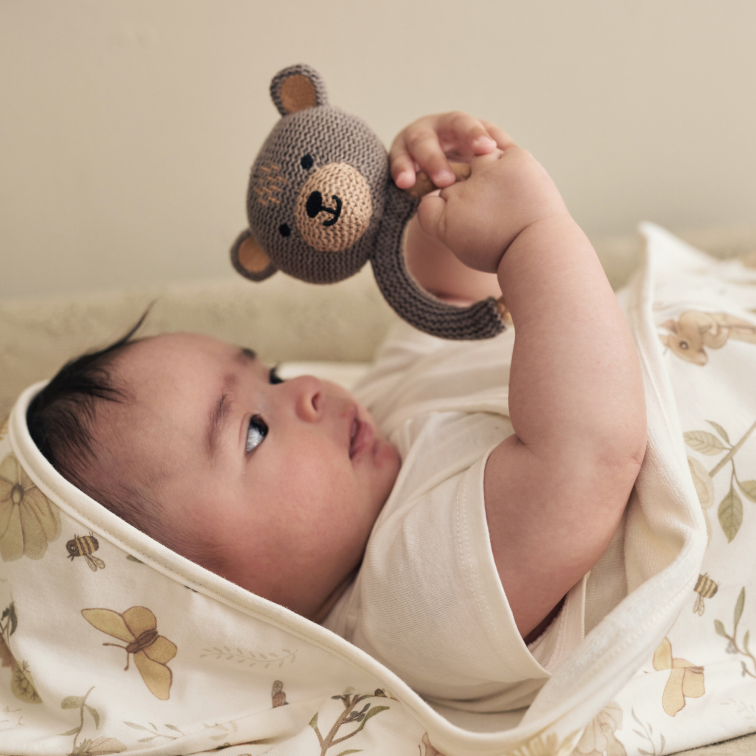 Unsere zauberhaften Babyrasseln in Form von kleinen Bärchen und süßen Rehen begleiten dein Baby mit sanften Klängen und zarten Farben – wahlweise in natürlichen Tönen, Rosa oder Blau. Sie unterstützen die Sinnesentwicklung und schenken Freude bei jedem Greifen und Klappern.