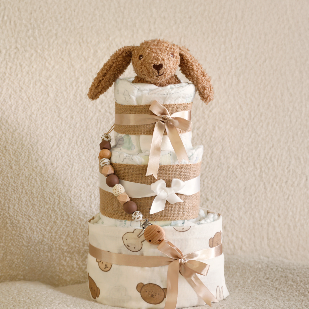 Whether as a welcome gift for the new family member or as a loving surprise for a baby shower, our diaper cakes combine functionality with enchanting design. Each cake is carefully crafted and will delight both parents and babies.